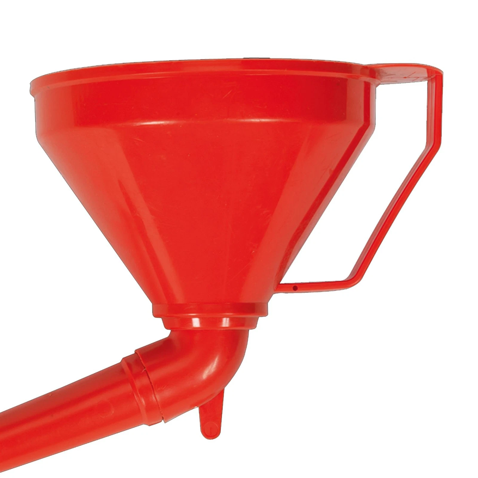 Manufactured from durable polyethylene, the funnel is resistant to oil, fuel, and certain acidic fluids, helping ensure reliable use during routine maintenance. The fixed offset spout allows easier access to filler openings that may be difficult to reach directly, particularly on vehicles with smaller diameter unleaded filler necks.